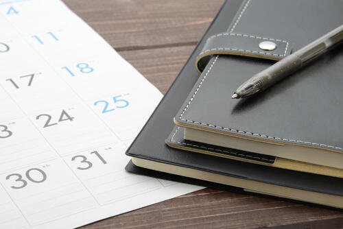 まずは、使い方の基本となるスケージュールを書き込むことからはじめよう。システム手帳にスケジュールを書き込むことで、自身の予定を見える化することができる。いつどんな予定が入っているのかを一目で確認しやすいメリットがある。