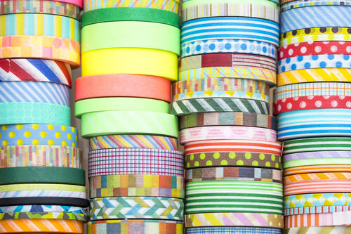 マスキングテープは、いろいろな種類が用意されているので、作りたいアルバムのテイストに合わせやすく使いやすい。写真や台紙をフレームのように囲ったり、ジャバラ折にして円にすればロゼット風の装飾にすることもできる。工夫次第でいろいろな装飾ができるので、お手製アルバムの作り方では欠かせないアイテムだ。