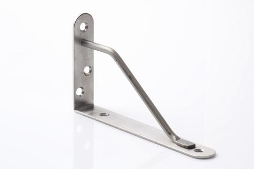 英語のLの形をした金具だ。両方の面に開いた穴にネジ、またはクギを通して家具と壁を固定。地震などによる転倒防止に効果がある。