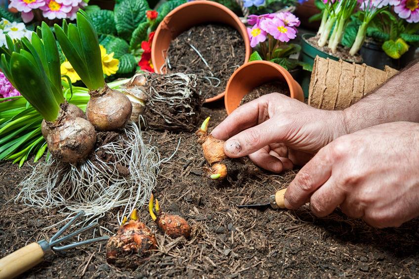鉢植えで育てる場合は、深さ3~5cm程度の位置に球根を3~4個埋める。地植えでは、深さ3~5cm程度の位置に、約5~15cmの間隔をあけながら球根を埋めよう。