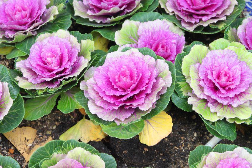 お正月といえば葉牡丹といわれるほど新年の定番である葉牡丹は、キャベツのように肉厚な見た目が印象的な花である。少しあるだけで見栄えがするうえに、大小さまざまなサイズがあるので扱いやすいのも特徴だ。もう少し白や紫系統の存在感を控えめにしたい場合は、パンジーやビオラで調整するとよいだろう。