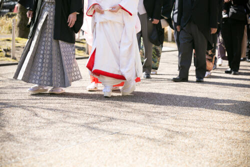 神様や参列者の前で結婚の誓いを立てる儀式。教会や神社で行われるのが一般的。