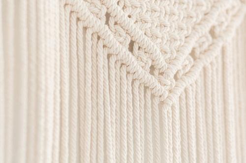 短いカーテンの丈を長くするには、マクラメをつけるアイデアもある。マクラメとはひもを編んで幾何学模様を作る織り方のことで、そこから転じてカーテンの裾につける幅広のレースを指すようになった。マクラメを短いカーテンの裾に縫い付けることで、長さもカバーでき、見た目もエレガントに仕上がるだろう。
