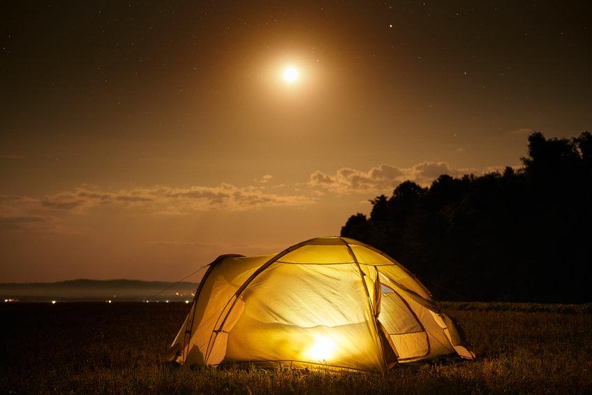 充電式のモバイルプロジェクターがあれば、好きな場所で映像を楽しめる。例えば、キャンプではテントがスクリーンの代わりになる。車中泊であれば、天井に投影して映画鑑賞もできる。
