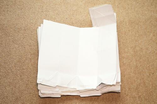• 牛乳パックの上部をすべて切り取り、中に段ボールを詰め込む