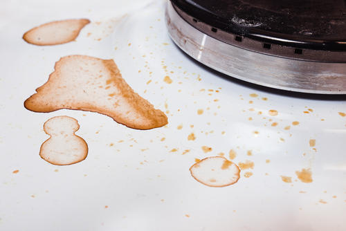 調理中に吹きこぼれたりした食材や調味料がガスの火で熱せられることで炭化したもの。デンプン成分を多く含むカレーやシチューなどは特に落としにくく頑固な汚れになってしまう。