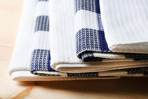 天板を拭いたり、さっとコンロ周りを拭いたり、テーブルを拭く台ふきんには、少し肉厚で小さめのタイプがおすすめ。縦横おおよそ30cmほどのもので十分だ。蚊帳(かや)生地など水分をしっかりと吸ってくれるものは、拭き心地も柔らか。しっかりと絞って拭けば、拭き跡が残る心配もない。また、近頃人気のマイクロファイバーの布巾を使用すれば、洗剤なしで天板もすっきり。ただ、臭いや汚れがつきやすいので、注意が必要だ。