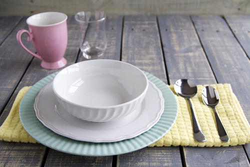 一番簡単なコーディネートは、食器の色を合わせることだ。基本はシンプルな白。平皿や深皿など、一通りの食器を白で揃えておくとコーディネートしやすい。色彩豊かな料理なら白い食器だけでも食卓は華やかになるが、色合いが地味になってしまう場合には、大皿は白以外のものを選ぶ、または鮮やかな色合いのランチョンマットを使うなど工夫しよう。シンプルな白い食器のほか、料理が映える黒い食器も揃えると便利。黒い食器は、和食を最高に美味しく見せるのだ。白と黒の食器が一通り揃ったら、青や黄色、柄ものなども少しプラスしてコーディネートの幅を広げよう。