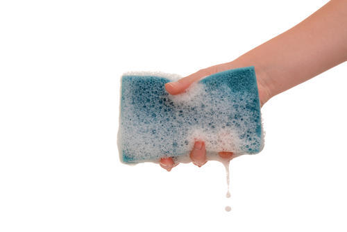 市販されている除菌効果のある台所洗剤大さじ半分以上をスポンジに直接つけ、よく揉みこみ泡立てる。