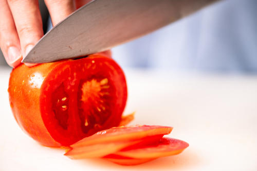 もし、切れない包丁で食材をカットすると、見栄えが悪くなるだけでなく味にも影響してくる。例えば、トマトを切った場合、包丁で押しつぶされて旨みや甘み成分が流出してしまう。