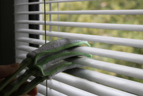 ホコリ掃除に適している理由は、ブラインドクリーナーがホコリを吸着する性能を持つマイクロファイバーを素材に使用していることだ。ブラインドに油汚れがない場合、ブラインドクリーナーを使いホコリ掃除を行うことで、十分綺麗にできる。100均のブラインドクリーナーは水洗いも可能なため、掃除後の管理も簡単だ。