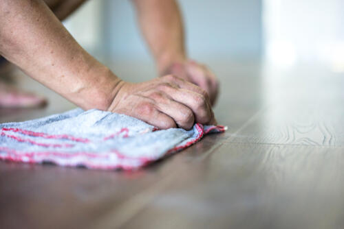 - まず雑巾を湿らせてから絞る。フローリングが速く乾くだけでなく雑菌も繁殖しにくくなるので、雑巾はできるだけしっかり絞るのがおすすめだ。