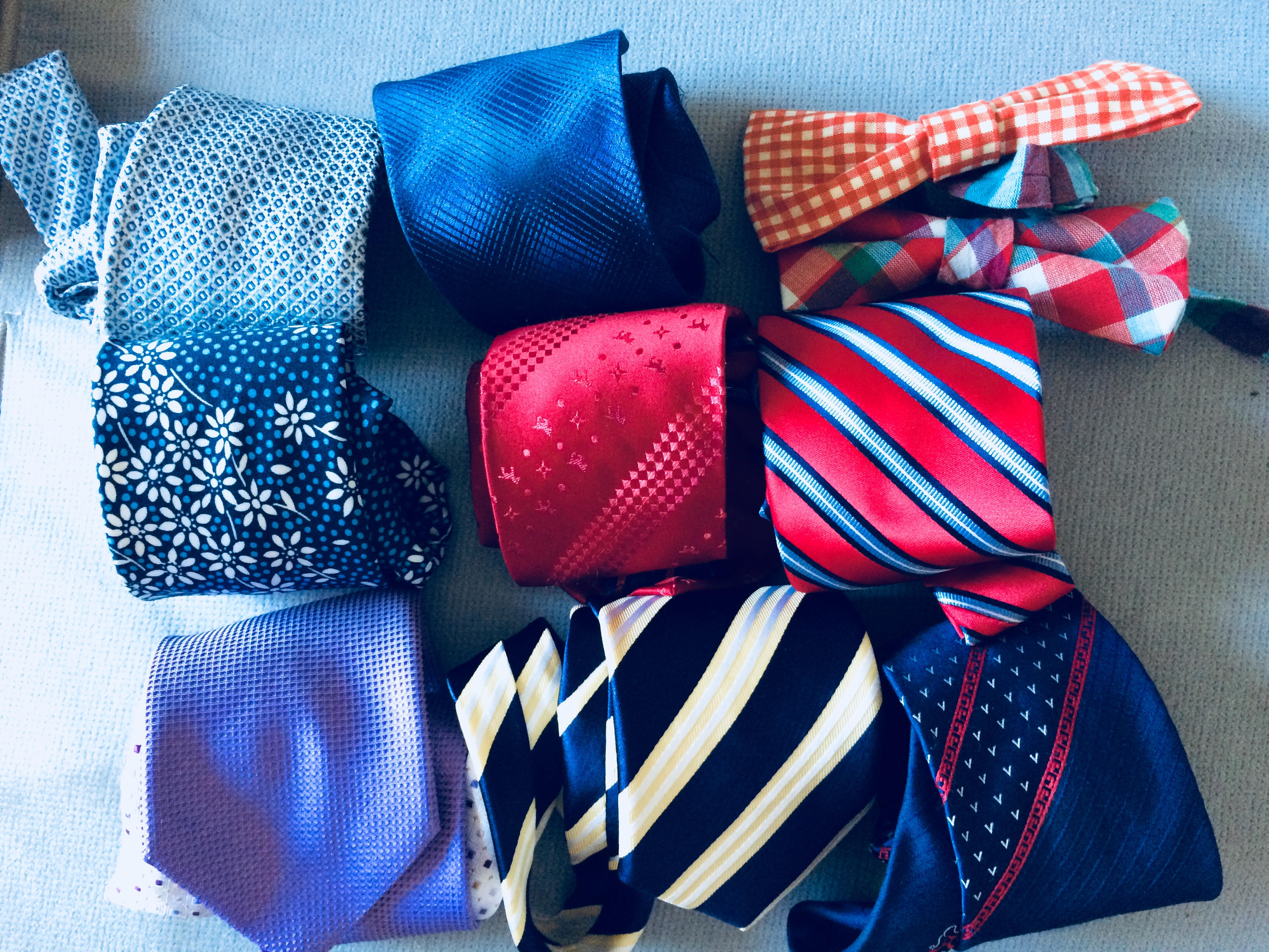 - ネクタイをバスタオルで挟むようにして水分を吸わせる。