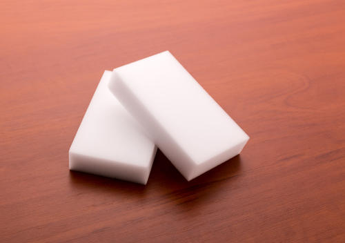 さらに、メラミンスポンジの中にはカット済みタイプもあるので、それを購入すればカットする手間が省ける。指輪を差し込む場所は、メラミンスポンジの表面にカッターで切り込みを入れればOKだ。布地で作るクッション材のように、2個用意して並べる必要はない。