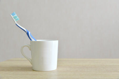 家族の人数分のコップと歯ブラシを用意し、洗面台の収納棚に1セットずつ立てて収納するのもシンプルな収納方法としておすすめだ。コップを共有する家庭も多いが、一人ずつコップを用意することで歯ブラシ同士がぶつからず、清潔に使用できるメリットがある。どれが誰のものか分からなくならないようにするために、コップと歯ブラシにイニシャルなどのステッカーを貼るのもよいだろう。