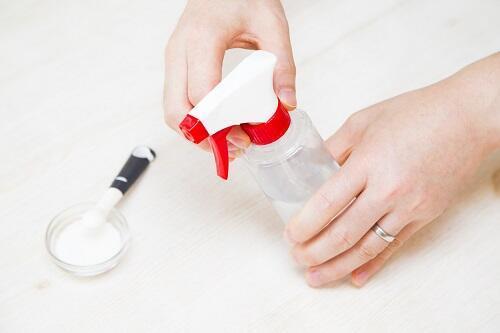 - 空のスプレーボトルに水500mlを入れ、小さじ1杯のセスキ炭酸ソーダを溶かす