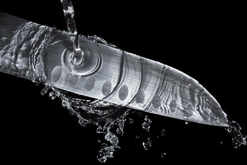 まずは、水と食器用の台所用中性洗剤などで十分に汚れを落としてから消毒をして欲しい。包丁の柄の部分との境目は意外と汚れているもので、柄を生肉を扱った手で触ったのなら、刃の部分と同じように洗浄や消毒が必要だ。