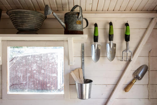 金属製のラックなどは、数十kgの荷重に耐える物があったり、キャスターが付いていて移動が楽にできる物があったりと、設置して便利になる鉄板のアイテムといえるだろう。同じく小型の物置のようなタイプの棚もおすすめだ。扉が付いている物を選べば、灯油や肥料といった臭いが気になるものを収納するのに活躍してくれることだろう。