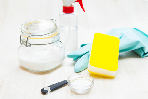 1.スプレーボトルに重曹を入れてからぬるま湯を加える。