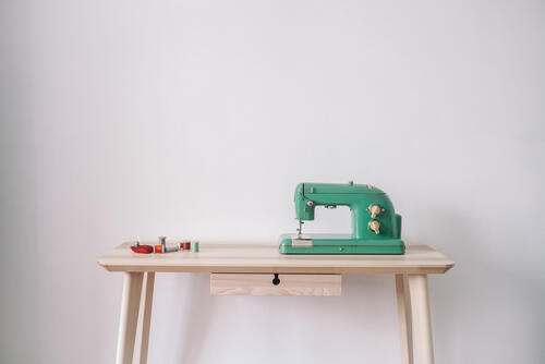 ミシンの収納と作業台を別にする場合は、専用のテーブルではなくワークテーブルを使うのもよい。ワークテーブルの用途がミシンのみなら折りたたみ式を選び、普段はたたんで立てかけてしまうと場所をとらず済む。