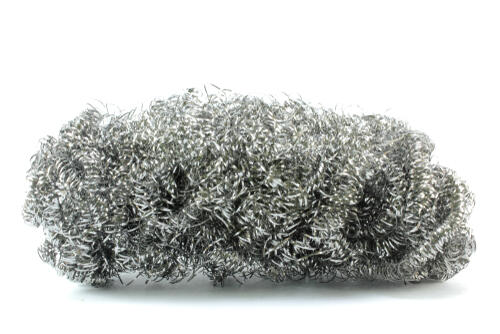 ステンレスやスチールなどで作られる金属たわしは、硬質な手触りと金属ならではの光沢が特徴的。ガスコンロの焦げ付きなど、スポンジではなかなか落ちないガンコな汚れを落とすときに重宝し、金属のサビを落とすときにも用いられる。スチールウールで作られたたわしは、繊維が細いためやわらかく、弾力性がある。ステンレスたわしなど、ほかの金属たわしに比べると、物に傷をつけにくい。ただしサビに弱いため基本的には使い捨てだと考えたほうがよいだろう。