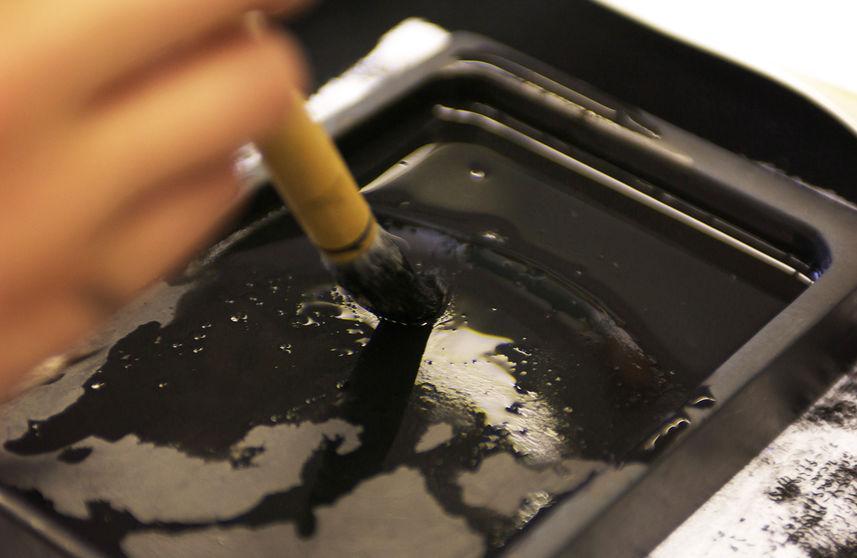 - 歯ブラシやヘラなどでこすり、ペーストが黒くなったら洗い流す