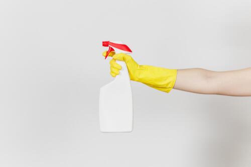 カビ取り剤は強力な洗剤なので、目や口、鼻に入らないようにするのはもちろん、皮膚にも極力付着しないように長袖を着用しよう。また、目線より上にある黒カビにスプレーする際はふりかかってくるおそれがあるためシャワーカーテンを外して行うようにしてほしい。