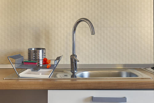 - 洗ったスポンジたわしは、スポンジラックに入れておく。シンクに直置きすると湿ったままの状態が続くが、ラックなどに入れることでシンクとの接地面が少なくなり早く乾かすことができる。