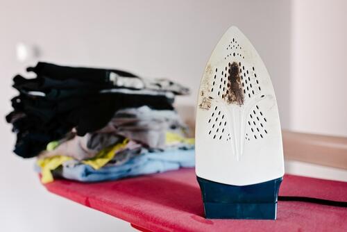 何年もアイロンを使っていると、アイロンのかけ面が薄く茶色に着色してくる。これは、衣類に残った洗濯のりや洗剤がアイロンのかけ面に付着し、焦げてしまうことによるものだ。この焦げをそのまま放置していると、アイロンをかける衣類などに茶色の汚れとして付着しかねない。とくに真っ白なシャツに付いてしまったら大変である。