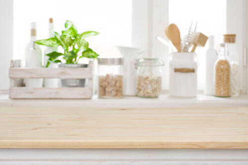 同じく、使用頻度の高い調味料をキッチンカウンター上に置いてもよい。調理中はもちろん、食事中にも取り出しが簡単だ。トレーに乗せれば、より整った印象になる。