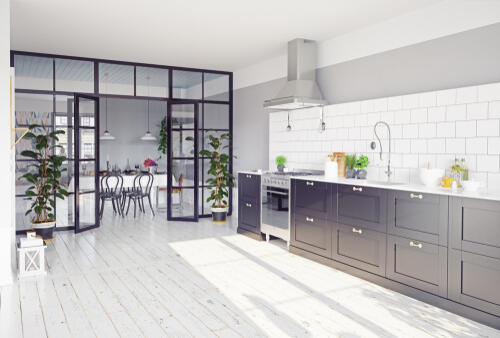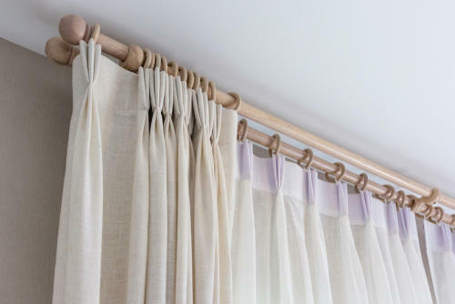家具の圧迫感をなくしたいなら、カーテンを引くのもおすすめである。カーテンレールがない場合は、突っ張り棒を代わりにしよう。もちろん突っ張らせる場所があることが前提だが、カーテンのフックを突っ張り棒にかけるだけで目隠しは完成する。キッチンのデザインとも合わせれば、統一感あるインテリアになり、必要なときにカーテンを開けられるのも魅力だ。