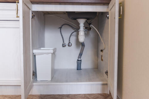 シンク下のキッチン収納スペースは、排水管が通っているため湿気がこもってジメジメしがちだ。カビが発生しやすく、暖かくなってくると害虫なども気になる。それを防ぐために、シンク下キッチン収納の床には除湿機能や防カビ機能、防虫効果があるシートを敷いて使うのがおすすめだ。