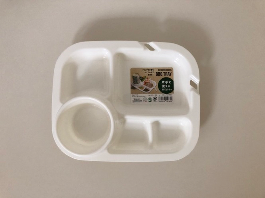 セリアで販売されている他のBBQトレーよりも仕切りが多く、小さい皿が2つ、食品を入れる皿が2つの計4つの皿があるのが特徴だ。