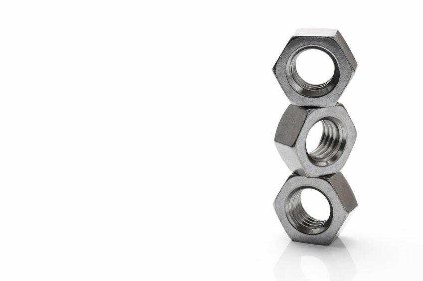 ナイロンナットとは、穴部分にナイロンワッシャーを内蔵したナットのことである。ナイロンナットは、ナットを締めるとナイロン部分にボルトが食い込みながら締まるようになっている。通常のボルトとナット以上に強い摩擦が生じるので、ネジが緩みづらくなるのだ。