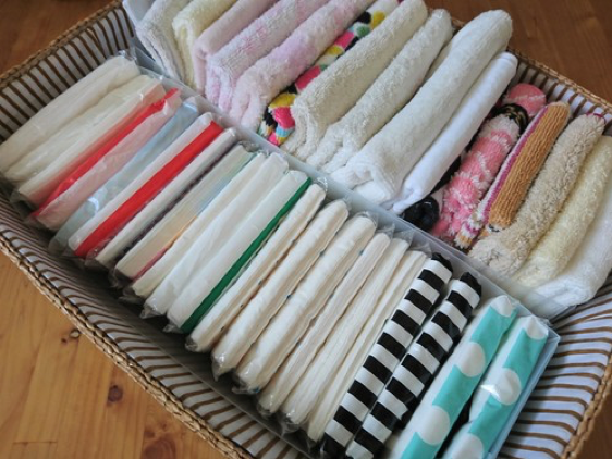 小さいケースはポケットティッシュにジャストフィット。ハンカチといっしょに収納しておけば、出かけるときの準備がスムーズにできる。子どもにもおすすめの収納方法だ。