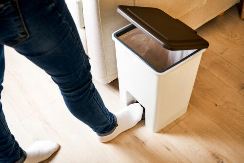 収納スペースがない場合は、おしゃれなゴミ箱に変えて、見せる収納をしよう。シンプルなデザインと色でインテリアに馴染むゴミ箱や、海外インテリアのようなおしゃれな見た目のゴミ箱を置けば、出しっぱなしにしても清潔感がある。