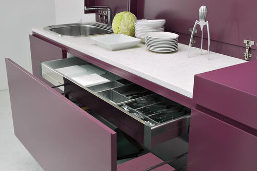 キッチン台の下の引き出しは、使用頻度や収納アイテムの大きさにあわせて賢く収納したい。引き出しの1段目は浅く、出し入れしやすいので、使用頻度の高いカトラリー(お箸やフォーク、スプーン)や調理器具を収納しよう。