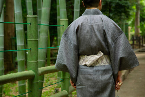 貝の口は角帯を使用する浴衣の帯の結び方で、男性の帯の最もポピュラーな結び方だ。江戸時代の町人や商人などが締めた締め方で、折り目が2枚重なっていて貝の口に似ていることからこう呼ばれている。祭りや花火大会にも、普段着にも結ぶことができる。これが結べれば、ほかの結び方ができなくても大丈夫だ。貝の口に見えるところは背中の真ん中ではなく、少し横にずらすのが粋に見えるポイントだ。