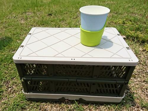 テーブルとしては小さいが、子ども専用のテーブルにしたり、飲み物をちょい置きしたりするにはとても便利に使える。収納するものがなくなった帰りは、折りたたんでコンパクトに持ち帰れる点も、おすすめポイントだ。