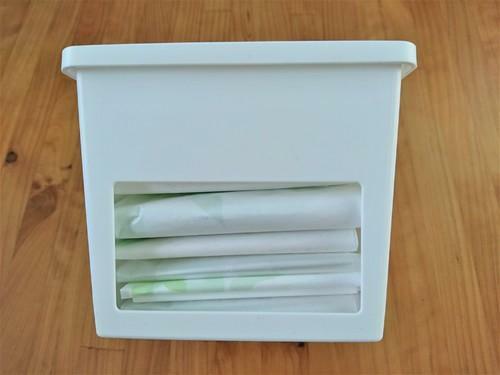 セリアのMonoストッカーは、日常使用する、一定量ストックしておきたい消耗品を収納するのに適している。ストックしておきたいものが多いキッチンで、大活躍間違いなしのアイテムだ。