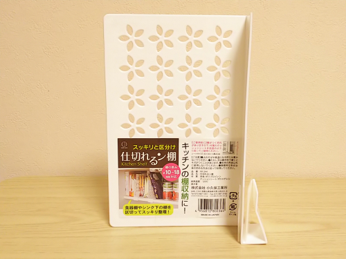 食器棚だけではなく、シンク下やコンロ下の棚板に挟んで使うのもおすすめだ。ストック食材や雑貨が倒れるのを防ぐことができる。複数使用し、細かく仕切って使用してもいいだろう。