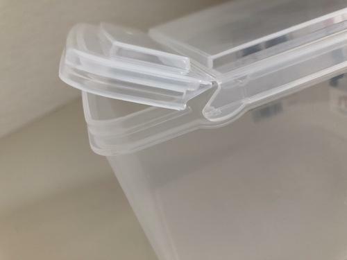 セリアの「ロックパック」はプラスチック製の保存容器で、使うときにふたを立てられるのが特徴だ。サイズバリエーションが豊富で、同じサイズのものは積み重ねて収納することができるため、狭いスペースでもすっきり収納することが可能だ。どのサイズもふたが3/4ぐらいまで開くので、アイテムを収納するときだけではなく、取り出すときも煩わしさがない。