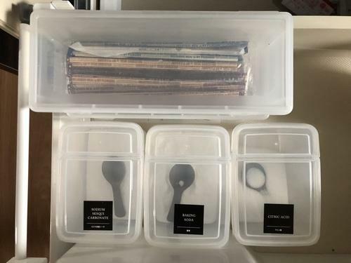 同じサイズのロックパックで統一すれば、掃除用洗剤をスッキリと収納することができるうえに、積み重ねて収納ができるからぜひ試してみてほしい。なお、粉末は湿気で固まりやすいので、頻繁に掃除用洗剤を使う人以外は小さいサイズのロックパックを使った方がいいだろう。