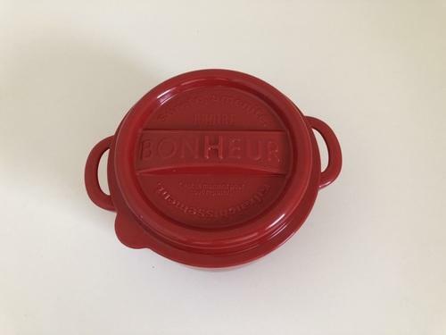 セリアのボヌール ランチポットLLのいい所は、何といってもその見た目だ。人気食器ブランドのル・クルーゼやストウブに似ているデザインは、料理がいつも以上に華やかに見えること間違いなしだろう。とくに食欲をそそる色であるレッドのランチポットは、サラダやスープを入れただけでも料理に彩りが生まれるのでおすすめしたい。また、鍋のような持ち手がついているおかげで、熱い料理を入れても持ちやすいのもひそかに嬉しいポイントだ。