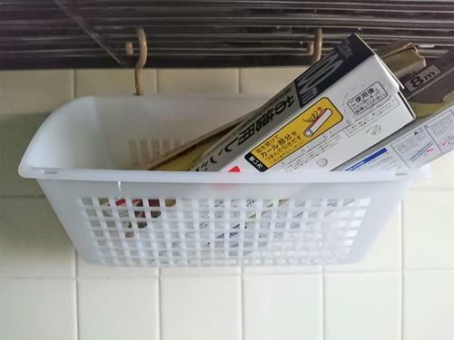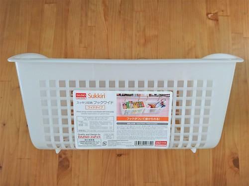 ダイソーの「スッキリ収納フック」で引っかけるタイプのカゴ収納を!
