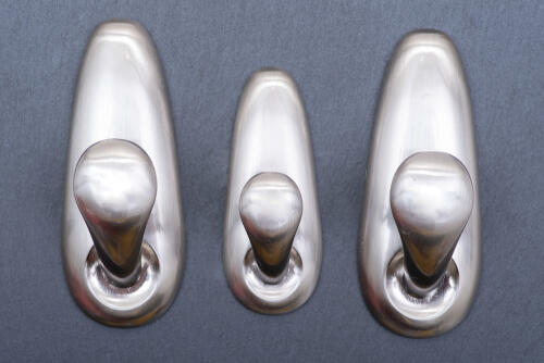 軽めのスティックタイプ掃除機なら、100均のフックでクローゼットの壁面や扉の裏に吊るすことが可能だ。スティックタイプの掃除機は年々軽量化が進み、総重量が3kg以下の製品も多いようである。100均の粘着フックには耐荷重5kgまでOKなものもあるので、掃除機を吊るすことも可能というわけだ。