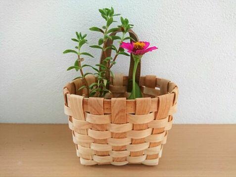 やさしい風合いのダイソーの杉製ナチュラルバスケットは、収納用だけでなく、ナチュラルなインテリアとして楽しむことができる。木製のカゴは植物との相性がよいので、鉢植えを入れて鉢カバーとして使ってみよう。