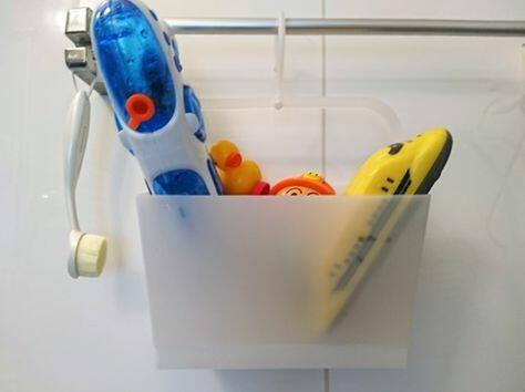 底面が網目状になって水切れがよく、水場でも使えるセリアのピンチバスケットは、風呂場の収納カゴとしても活躍する。洗剤やスポンジなどの掃除グッズを入れたり、風呂で使う子どものおもちゃを入れたりして、風呂場をスッキリさせることができるのだ。また、銭湯や温泉、ジムなどで、スパバッグ代わりにも使えるだろう。