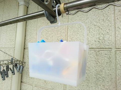 2. セリアの「ピンチバスケット」は物干し竿に引っかけられる洗濯ばさみ入れ!
