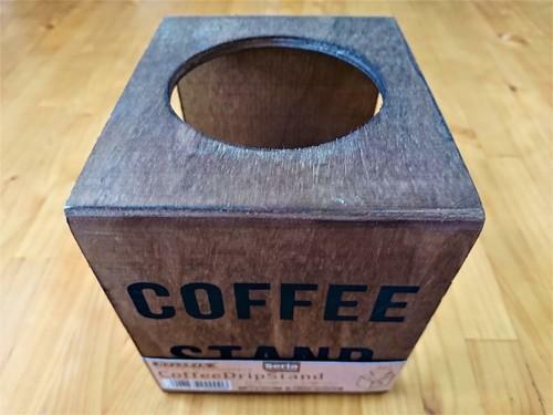 セリアの木製のコーヒードリップスタンドには2タイプある。上下と前後に板があるロの字型のスクエアタイプと、上下と後ろに板があるコの字型のオープンタイプの2タイプだ。